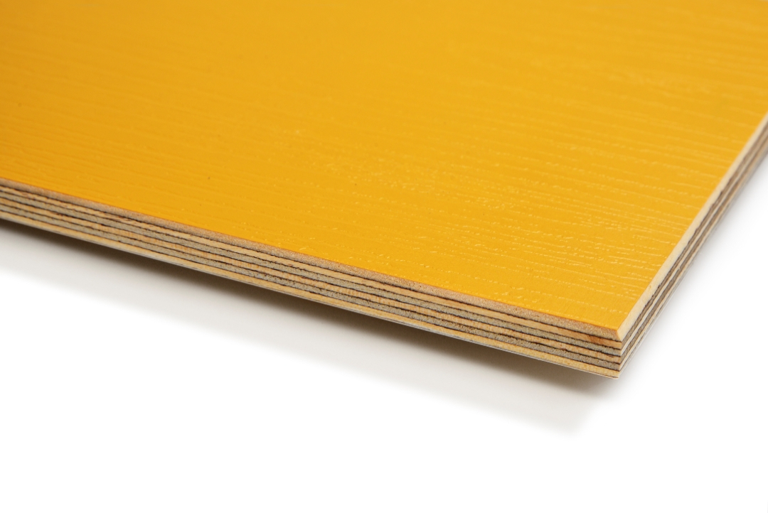 Birch plywood overlaid with a film on both faces. The wear face has a special surface pattern (WT). The reverse face usually is smooth (F).